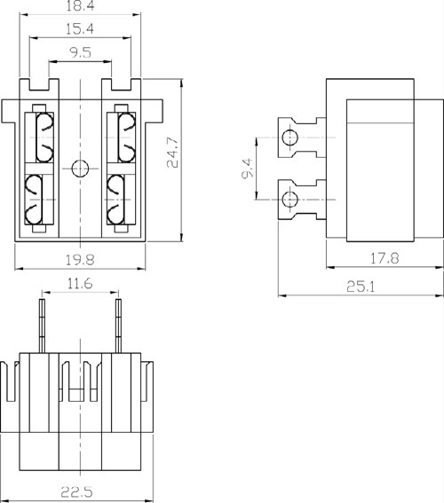 Pre-assembled fuse holders to accomodate mini, standard and maxi blade fuse sizes. Easily mounted and soldered to the PCB,the mini size holder is compatible with ATO 297 and ATM automotive blade fuses. The standard size holder is compatible with ATO 257 and Bussman ATC automotive blade fuses. The maxi size holder is compatible with Maxi 297 and Max series fuses. holders mount vertically on the PCB.